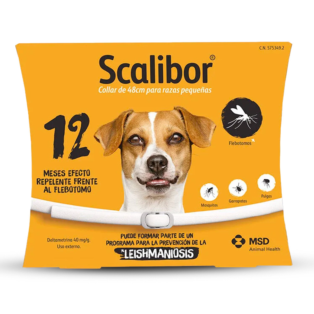 El collar Scalibor de 48 cm está indicado para perros pequeños y mantiene a su amigo protegido contra los parásitos durante 6 meses. Este collar contiene deltametrina, un insecticida y acaricida con propiedades repelentes (antialimentación). Protege a su perro contra flebótomos (agente transmisor de la leishmaniasis) durante 12 meses y también contra garrapatas y mosquitos (Culex pipens) durante 6 meses.