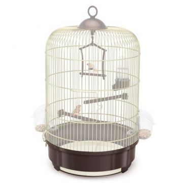 Pequeña jaula redonda para canarios y otras pájaros pequeños. Dispone de 2 cajones extraíbles para facilitar la limpieza de la jaula.