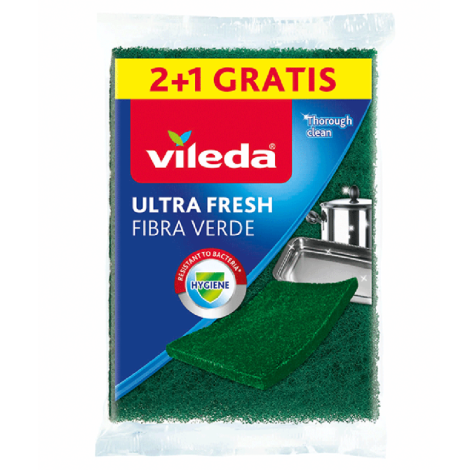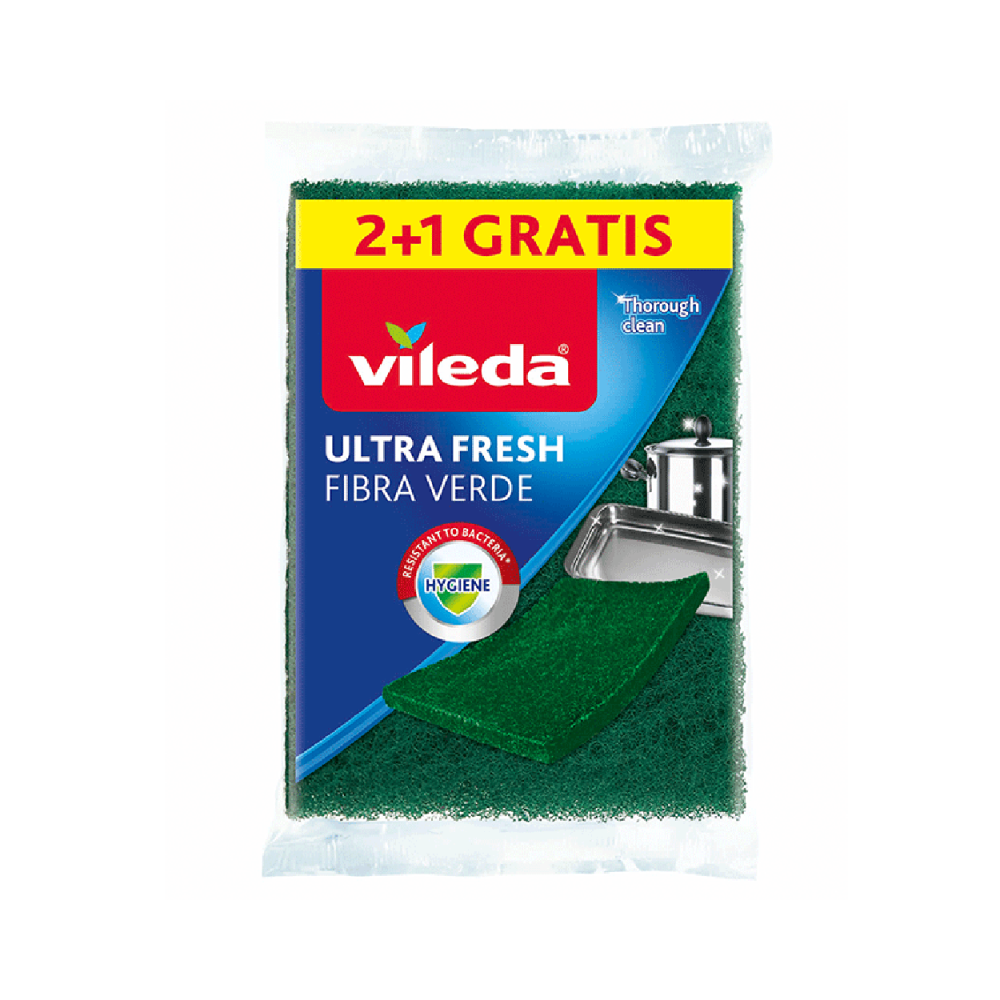 El estropajo de fibra verde Ultra Fresh es el aliado ideal para las limpiezas diarias en casa y en la cocina.