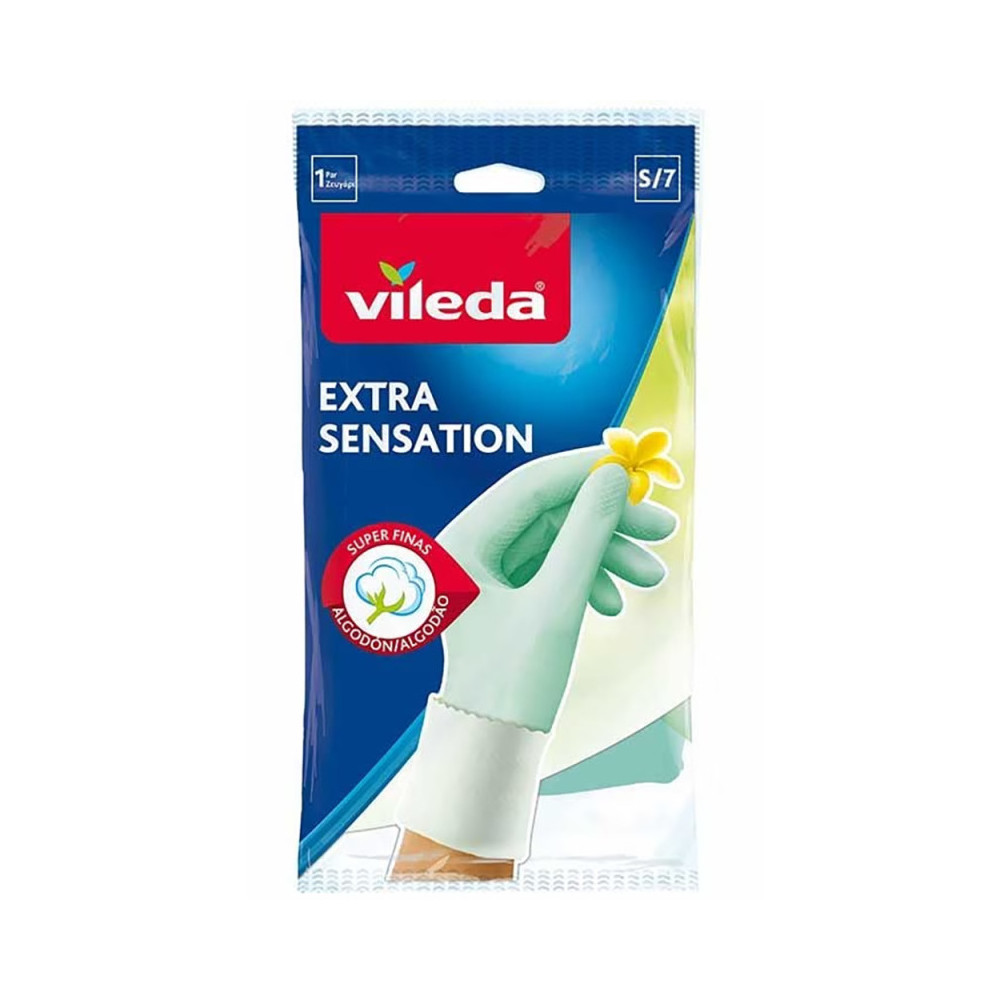 Guantes reutilizables Vileda Extra Sensation, hechos de látex 100% natural, ultrafinos con forro de algodón. Ofrecen sensibilidad táctil, súper agarre y protegen las manos sensibles con comodidad.