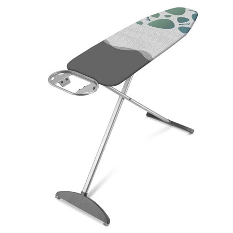 Tabla Park&Go de Vileda con superficie media de 120×38 cm, funda de algodón con capa metálica, zona específica para apoyar la plancha (hasta 230 °C), altura ajustable y pies antideslizantes extragrandes.