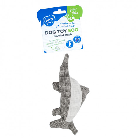 Juguete ecológico para perros, en forma de pez espada, hecho de poliéster reciclado derivado de botellas de plástico y el exterior es de tela, con alta calidad de sobras de almohadas.