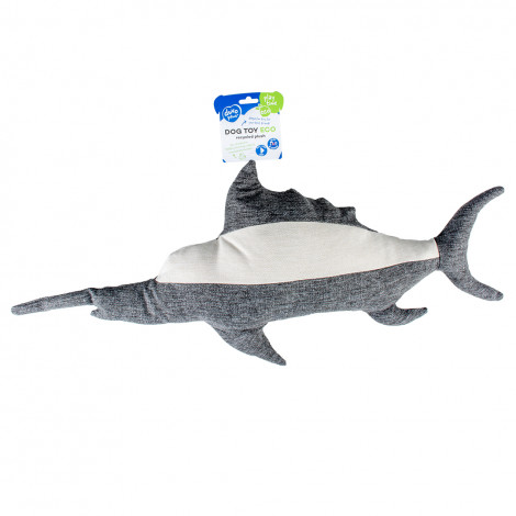 Muñeco ecológico en forma de Pez Espada, para perro, en tela con relleno 100% reciclado.