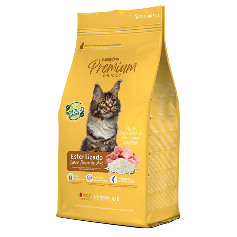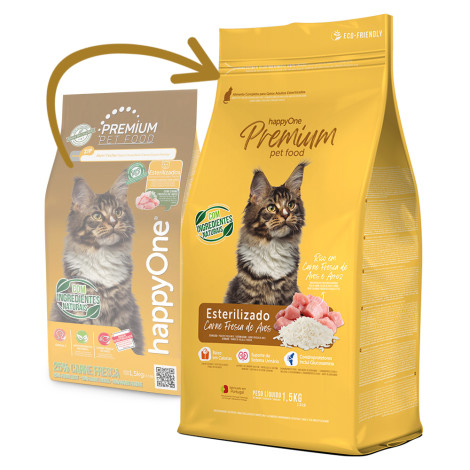 Este pienso seco happyOne Premium es un alimento completo para gatos adultos, de mayor digestibilidad y palatabilidad. La carne fresca de aves es una deliciosa fuente de proteína digestible, para la buena salud de los gatos. Contiene antioxidantes naturales, que ayudan a apoyar los mecanismos de defensa natural. Incluye fibras naturales (caña de azúcar), para ayudar a mantener la salud intestinal y controlar la formación de bolas de pelo.