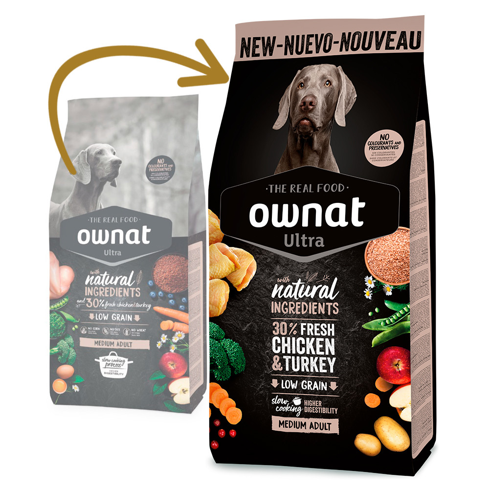 Ownat Ultra Medium Adult es un alimento seco para perros adultos de tamaño mediano. El alimento contiene proteínas de carne fresca y una cantidad equilibrada de fibra dietética para regular el sistema digestivo. Diseñado para cubrir las necesidades nutricionales de perros adultos de tamaño medio (de 1 a 7 años) con un nivel de actividad normal.